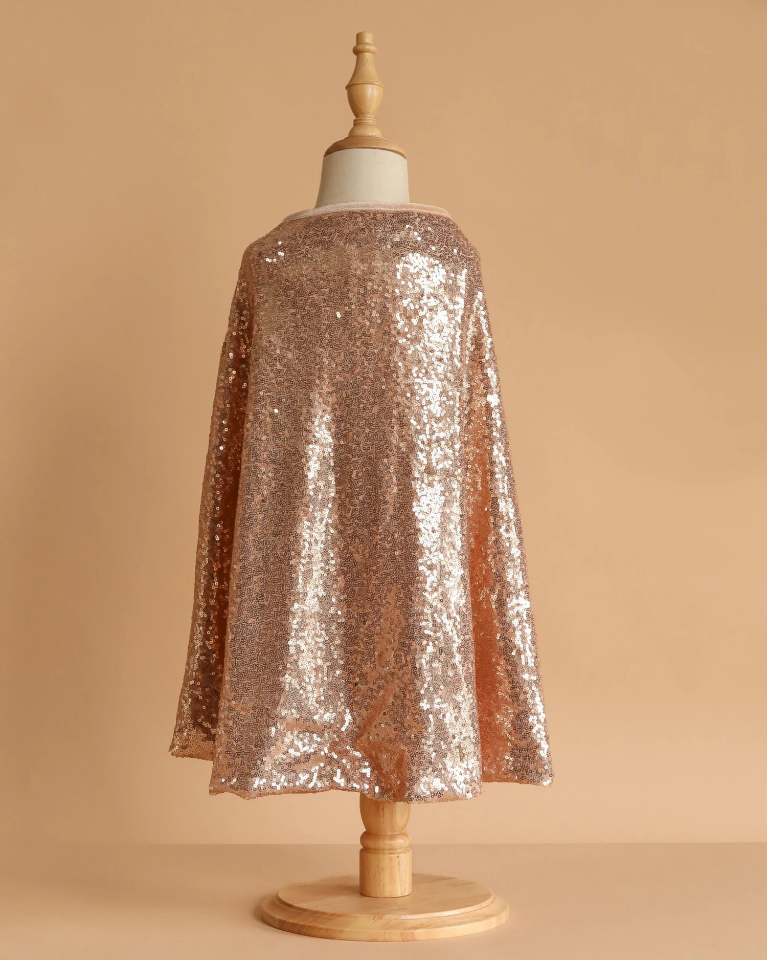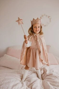 This cape that shines brightly certainly has magical powers! Princesses will associate it with the crown and magic wand in pink sequins.
