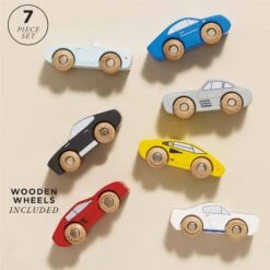 This set features 7 beautifully crafted classic sports cars that are sure to ignite the imagination. Each car has been thoughtfully designed, with sturdy wooden wheels that are train track compatible with all standard tracks. The cars have highly detailed artwork, providing a realistic touch to the racing experience. Brightly colored design to stimulate imaginations and help develop cognitive skills, dexterity and hand-eye coordination. -Safety tested for ages 2 years+ -Made of FSC®-certified wood -Plastic-free toy -Decorated with non-toxic, water-based resistant paints