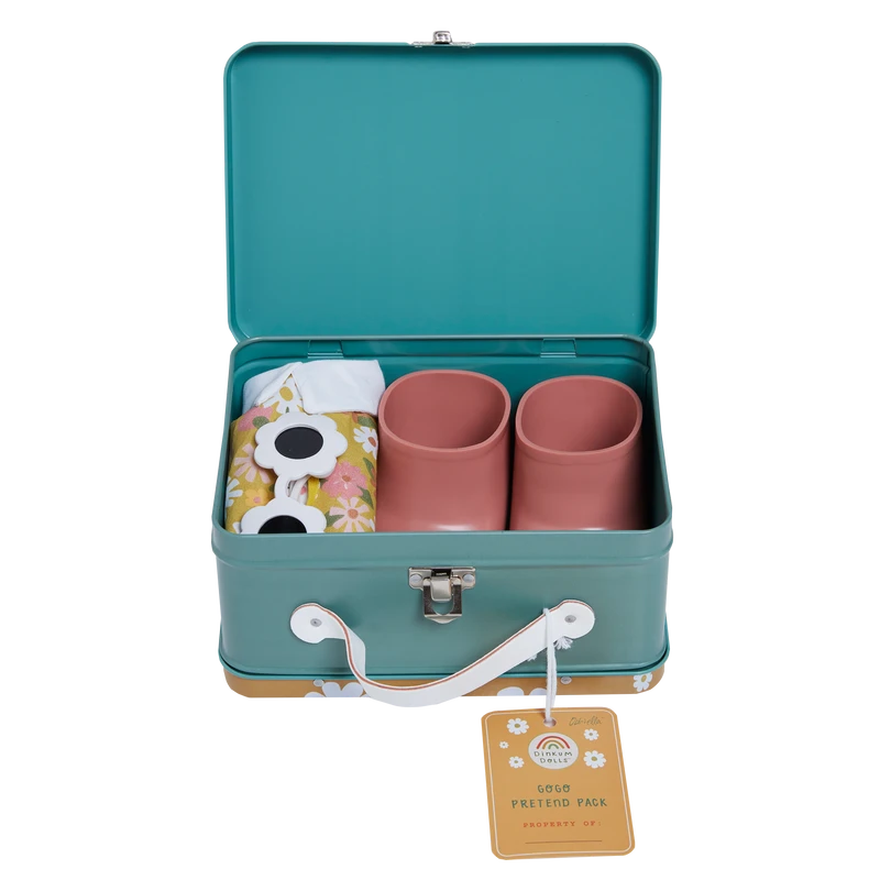 Extend the world of Dinkum Doll play with this Pretend Pack for lots of dance-filled, groovy adventures! Packaged in a collectible printed metal tin.