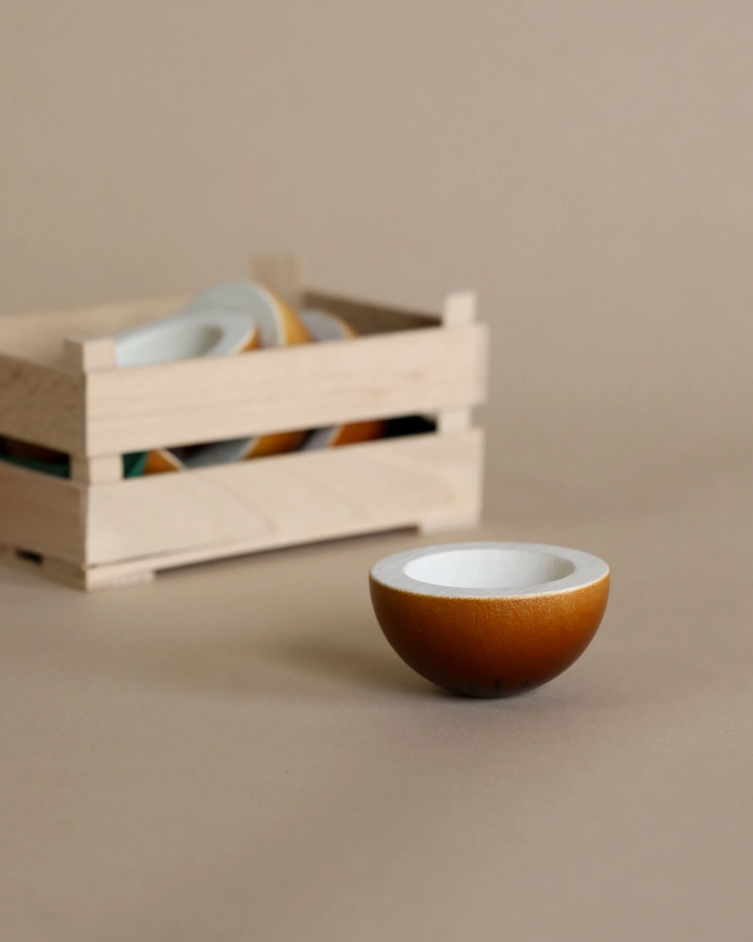 A realistic half coconut that looks good enough to eat! Children love to imitate what adults do, whether it is shopping, cooking, or sitting down to eat. The miniature food by Erzi will become an integral part of playtime, encouraging hours of house and shop fun. Great toys to stimulate young imaginations! Handcrafted in Germany of beechwood.
