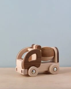 Handmade in Romania from beech wood, this cement mixer is a must-have for every construction vehicle loving little one.Â
