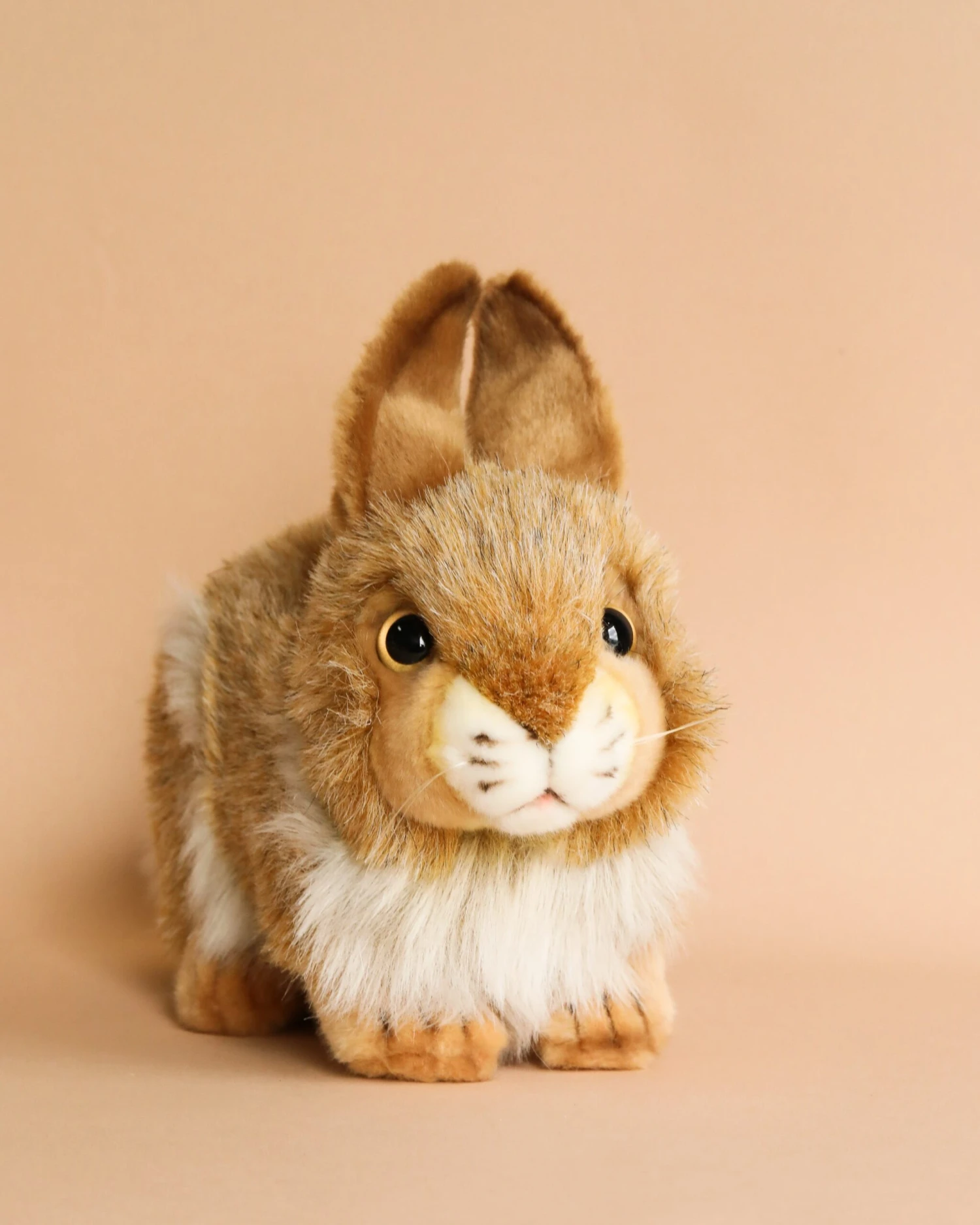 Artisans hand sew the animals “inside out”, an old world tradition that results in the mininization of seams, and their bodies are carefully “sculpted” to create “musculature” and “features” like movement in a walking or sitting position that are unique to each creature. On average, there are 42 separate pieces required to make each animal, that must be combined by a team of truly creative artists to create the distinctly realistic features that characterize HANSA animals. (Some animals have as many as 240 different parts!) Each animal is individually hand sewn, to give it a unique “personality”, there are more than 860 different fabrics and man-made furs from which the “coat” and “hides” are made, along with over 6000 sets of different eyes, whiskers, claws, noses, and related accessories allocated for creating these wonderful plush animals. Stuffing emphasizes careful attention to the placement of the highest quality man-made materials.