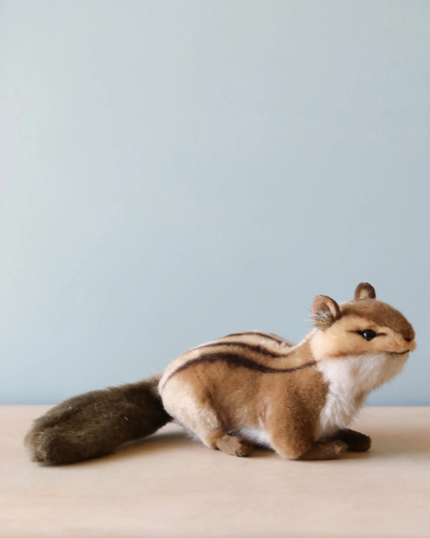 Artisans hand sew the animals “inside out”, an old world tradition that results in the mininization of seams, and their bodies are carefully “sculpted” to create “musculature” and “features” like movement in a walking or sitting position that are unique to each creature. On average, there are 42 separate pieces required to make each animal, that must be combined by a team of truly creative artists to create the distinctly realistic features that characterize HANSA animals. (Some animals have as many as 240 different parts!) Each animal is individually hand sewn, to give it a unique “personality”, there are more than 860 different fabrics and man-made furs from which the “coat” and “hides” are made, along with over 6000 sets of different eyes, whiskers, claws, noses, and related accessories allocated for creating these wonderful plush animals. Stuffing emphasizes careful attention to the placement of the highest quality man-made materials.
