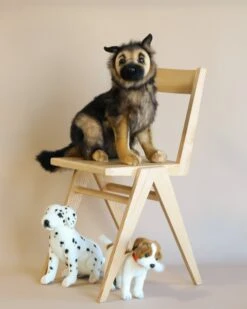 Artisans hand sew the animals “inside out”, an old world tradition that results in the mininization of seams, and their bodies are carefully “sculpted” to create “musculature” and “features” like movement in a walking or sitting position that are unique to each creature. On average, there are 42 separate pieces required to make each animal, that must be combined by a team of truly creative artists to create the distinctly realistic features that characterize HANSA animals. (Some animals have as many as 240 different parts!) Each animal is individually hand sewn, to give it a unique “personality”, there are more than 860 different fabrics and man-made furs from which the “coat” and “hides” are made, along with over 6000 sets of different eyes, whiskers, claws, noses, and related accessories allocated for creating these wonderful plush animals. Stuffing emphasizes careful attention to the placement of the highest quality man-made materials.