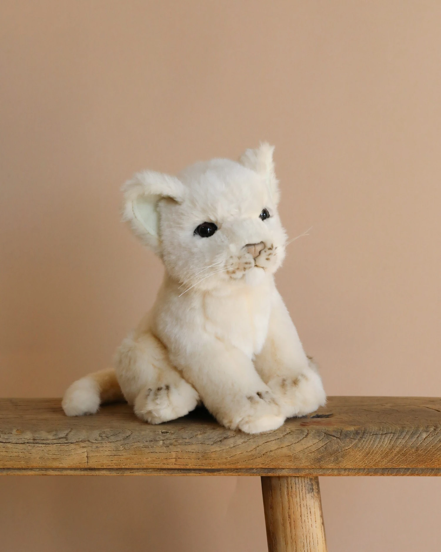 Artisan hand sew the animals “inside out”, an old world tradition that results in the mininization of seams, and their bodies are carefully “sculpted” to create “musculature” and “features” like movement in a walking or sitting position that are unique to each creature. On average, there are 42 separate pieces required to make each animal, that must be combined by a team of truly creative artists to create the distinctly realistic features that characterize HANSA animals. (Some animals have as many as 240 different parts!) Each animal is individually hand sewn, to give it a unique “personality”, there are more than 860 different fabrics and man-made furs from which the “coat” and “hides” are made, along with over 6000 sets of different eyes, whiskers, claws, noses, and related accessories allocated for creating these wonderful plush animals. Stuffing emphasizes careful attention to the placement of the highest quality man-made materials.