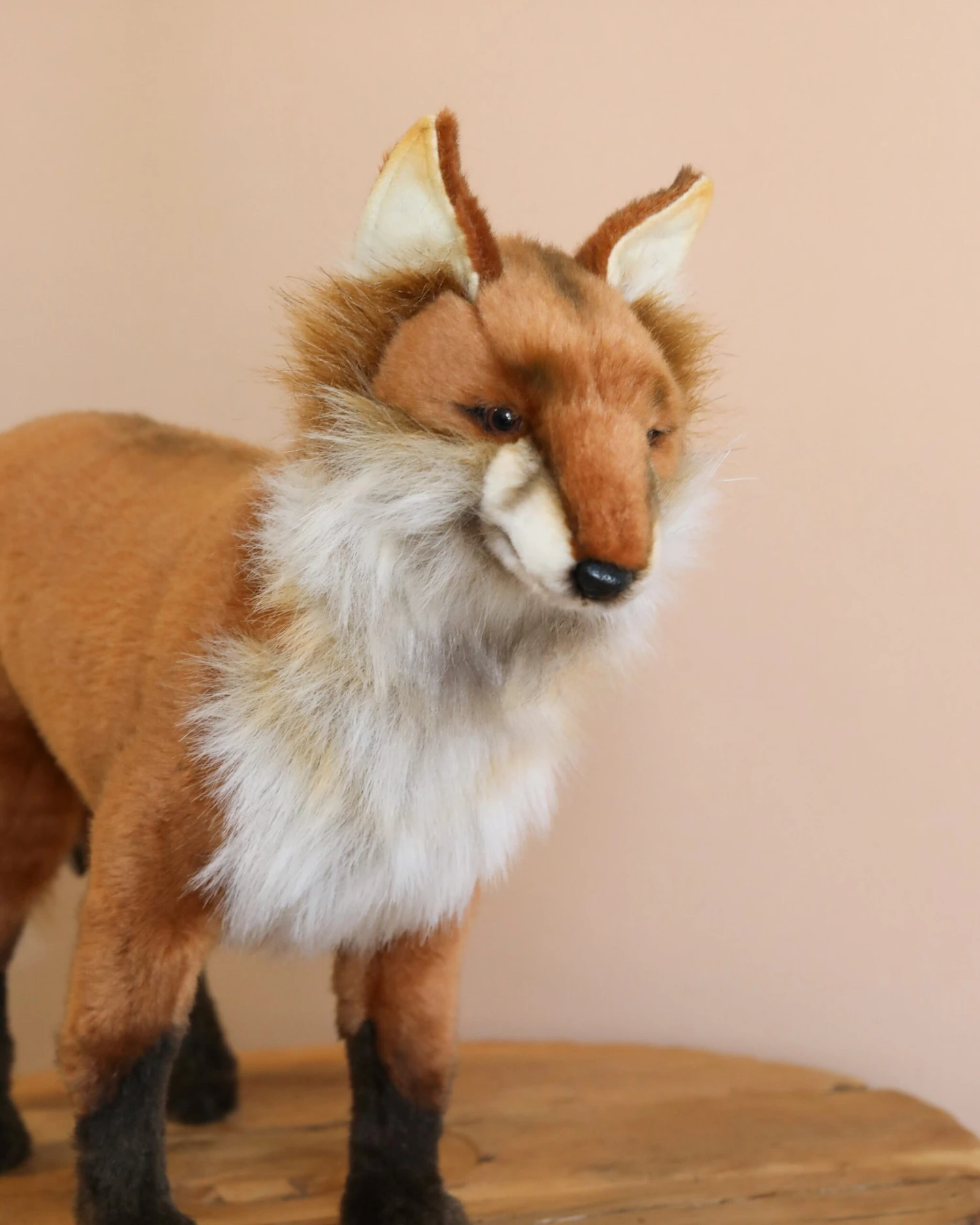 Artisan hand sew the animals “inside out”, an old world tradition that results in the mininization of seams, and their bodies are carefully “sculpted” to create “musculature” and “features” like movement in a walking or sitting position that are unique to each creature. On average, there are 42 separate pieces required to make each animal, that must be combined by a team of truly creative artists to create the distinctly realistic features that characterize HANSA animals. (Some animals have as many as 240 different parts!) Each animal is individually hand sewn, to give it a unique “personality”, there are more than 860 different fabrics and man-made furs from which the “coat” and “hides” are made, along with over 6000 sets of different eyes, whiskers, claws, noses, and related accessories allocated for creating these wonderful plush animals. Stuffing emphasizes careful attention to the placement of the highest quality man-made materials.