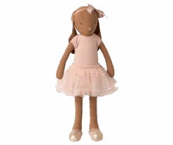 The well known Maileg bunny dressed up as a ballet dancer. It wears a rose colored suit, tulle skirt and ballet shoes.