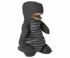 Look at this funny friend! A large Gantosaurus with big teeth has arrived and is ready to play with all of us. It is made in a soft mix of ramie and cotton, the striped stomach is made in a very nice blend of linen and cotton.