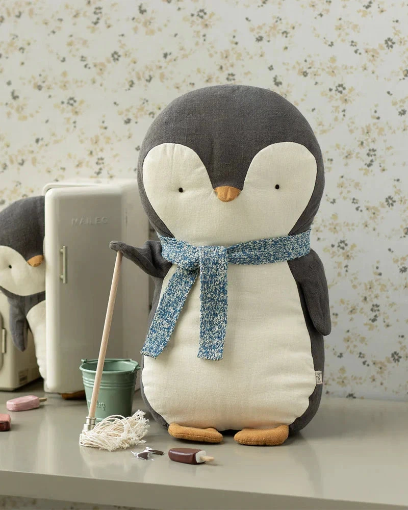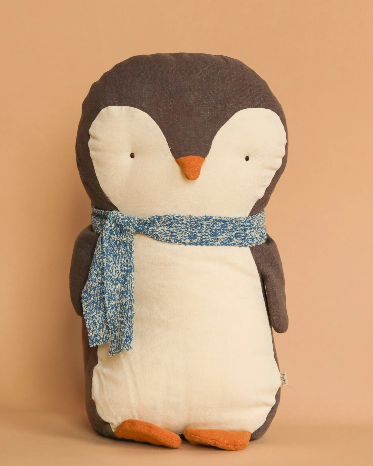 Our penguin is a sweet friend who can follow you everywhere. It is made in soft fabrics and has pellets in the back so it can easily sit.