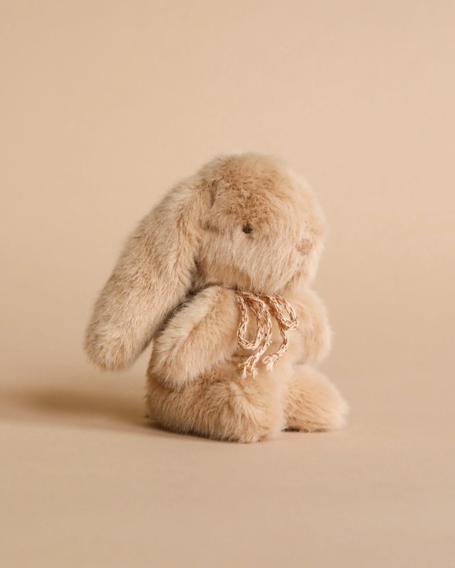 A small plush toy which is perfect for a tiny hand. The mini sized bunny has the sweetest look and a very soft hand feel.Height: 5.11Â in.
