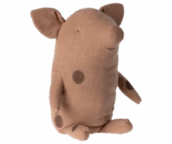 The classic truffle pigs have got a new bigger size in the family. This big truffle pig is made in a ramie/cotton blend material which ensure a soft handfeel and has printed dots on body. It fits perfectly into small arms for a freindly hug.