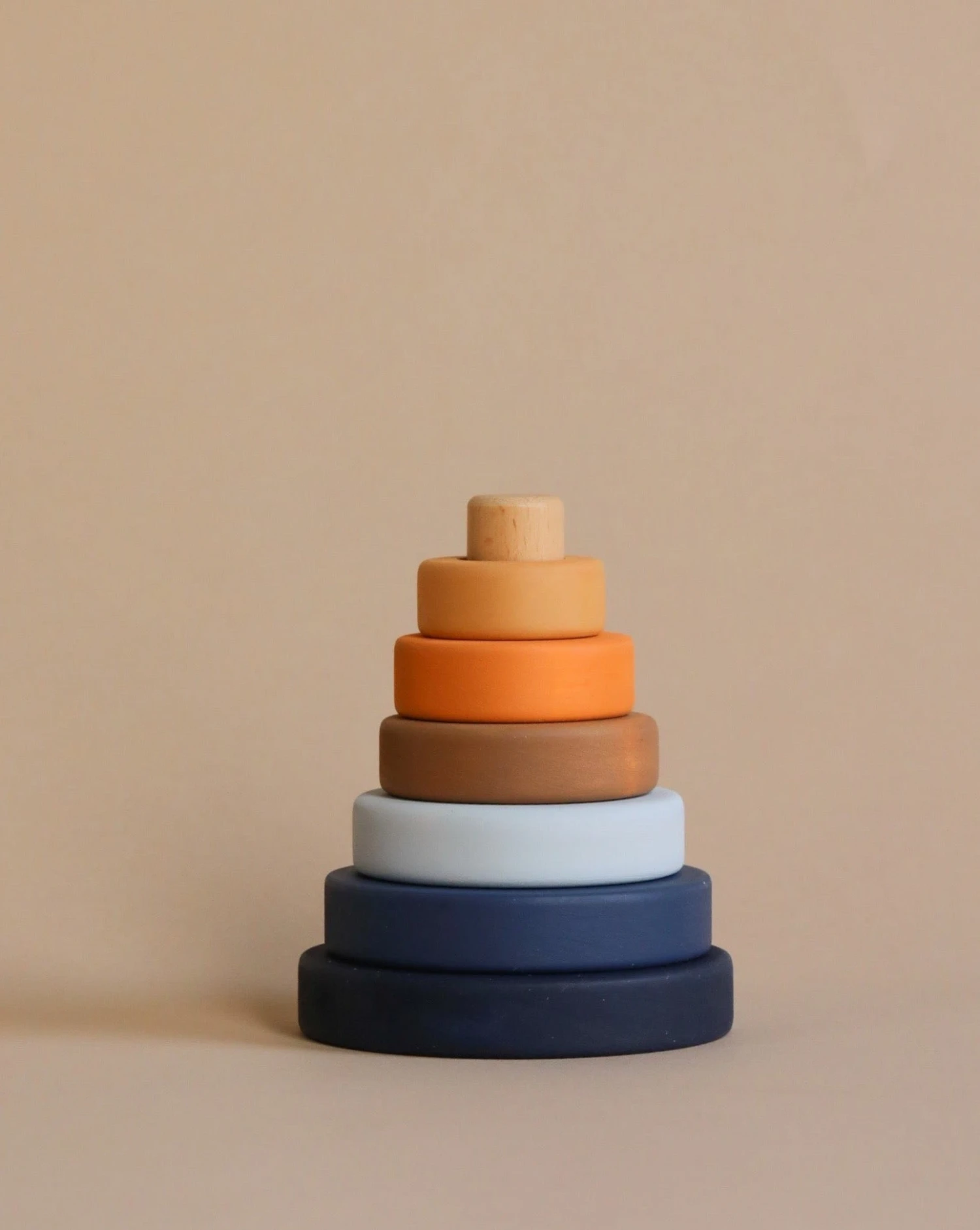 Handmade by Sabo Concept in Ukraine and painted with non-toxic, water-based paint. This stacking toy is great for hand-eye coordination.Â