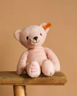 The words “My First Steiff” are embroidered in matching thread on the bear’s foot pad. Featuring the world-famous “Button in ear” trademark, a symbol of the highest quality and safety. From the company that invented soft toys in 1880 and the teddy bear in 1902.