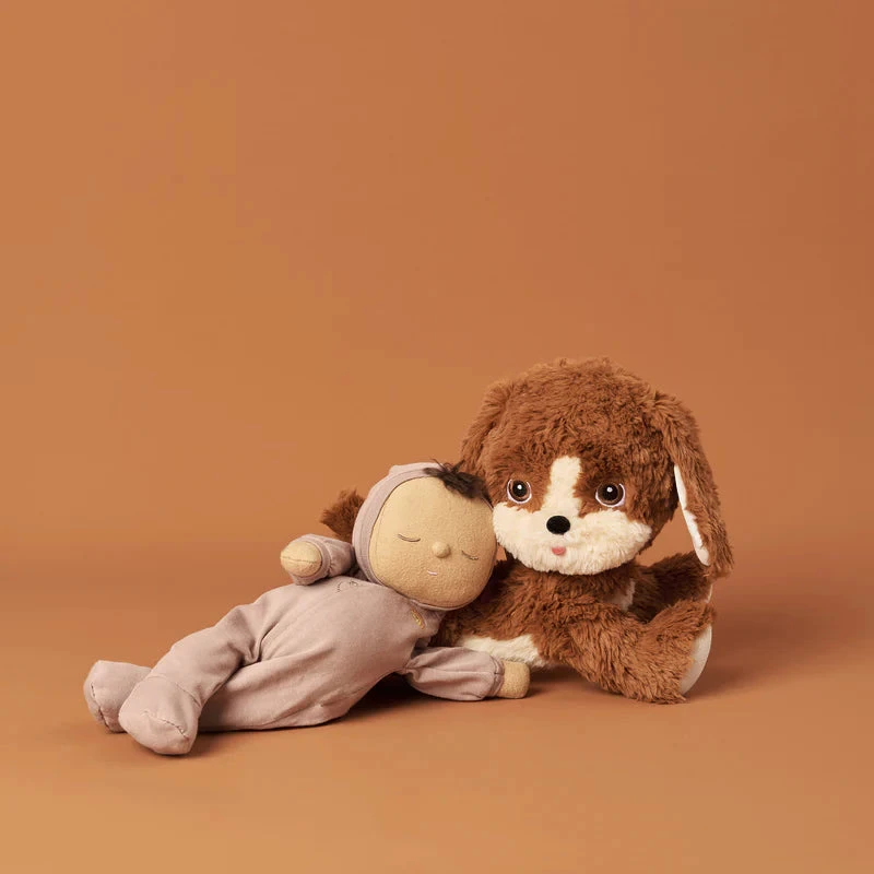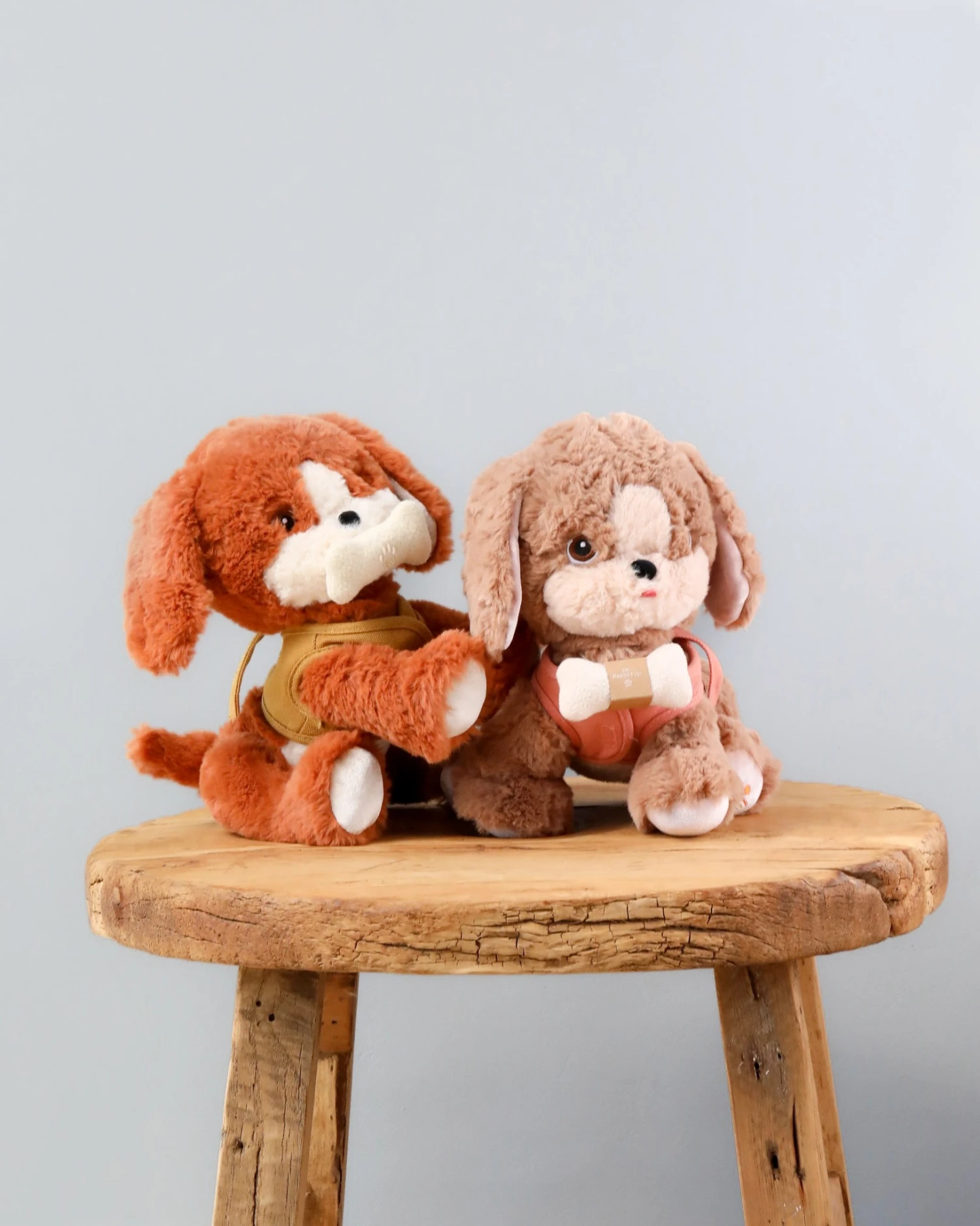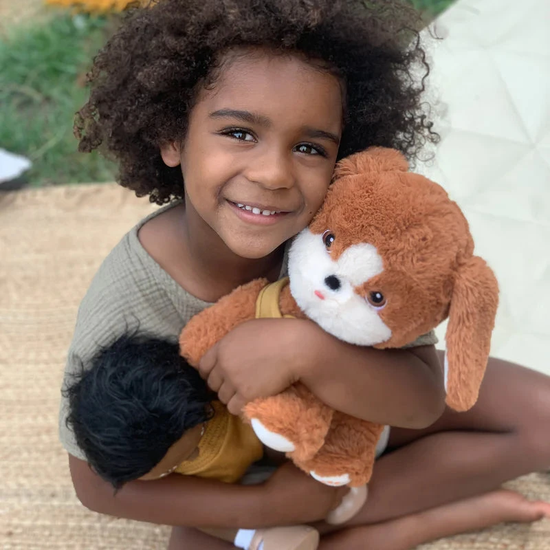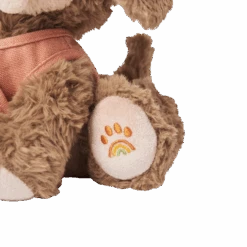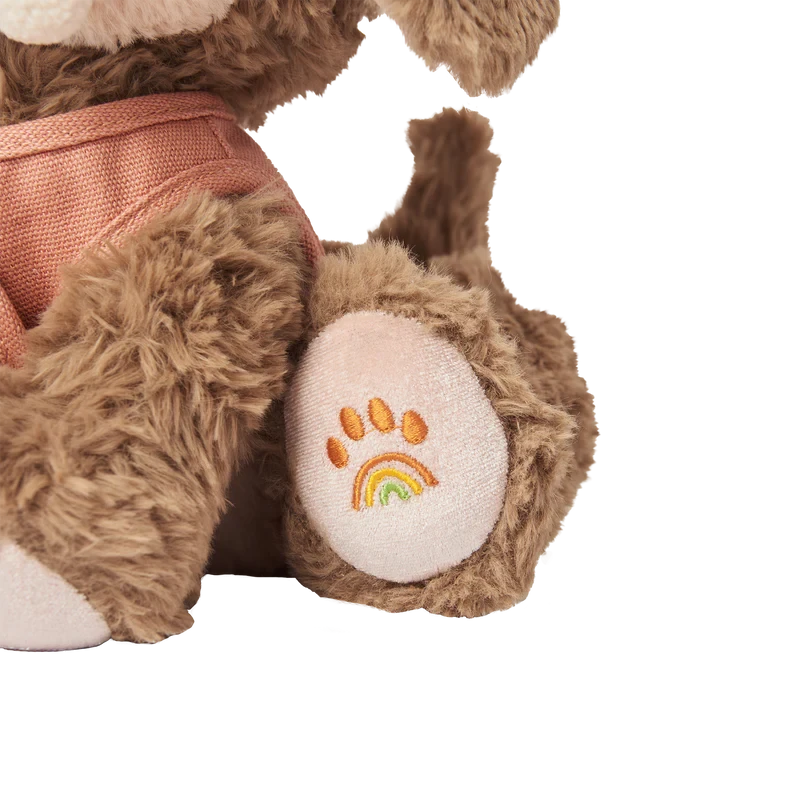 Made from soft plush fabric that is 100% recycled with velvety ears to nuzzle, Honey is fully poseable and can stand, lay down and even sit! Honey’s head moves and is embroidered with the sweetest doggy face, plus there’s a rainbow surprise on one of Honey’s little paws!Â