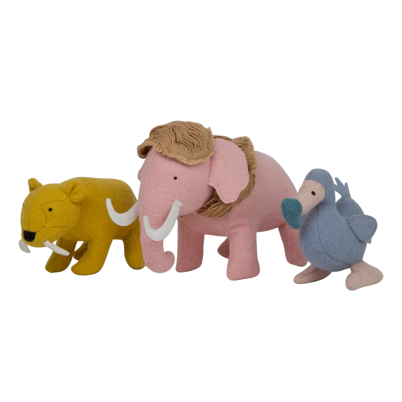 Handmade from a soft wool blend with embroidered features, these Extinct Animal pals are the perfect size for small hands and are wonderful prompts for hours of imaginative play.