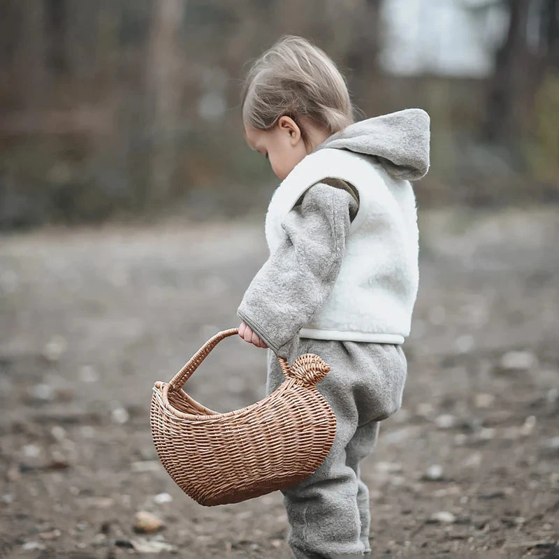 Woven by hand from 100% Natural Rattan this handy lightweight basket is perfect for egg collecting (it fits a dozen!), treasure toting, playtime, little market trips, and so much more. With its sturdy woven handle, this chook is made to roam far and wide and fit everything you need inside!
