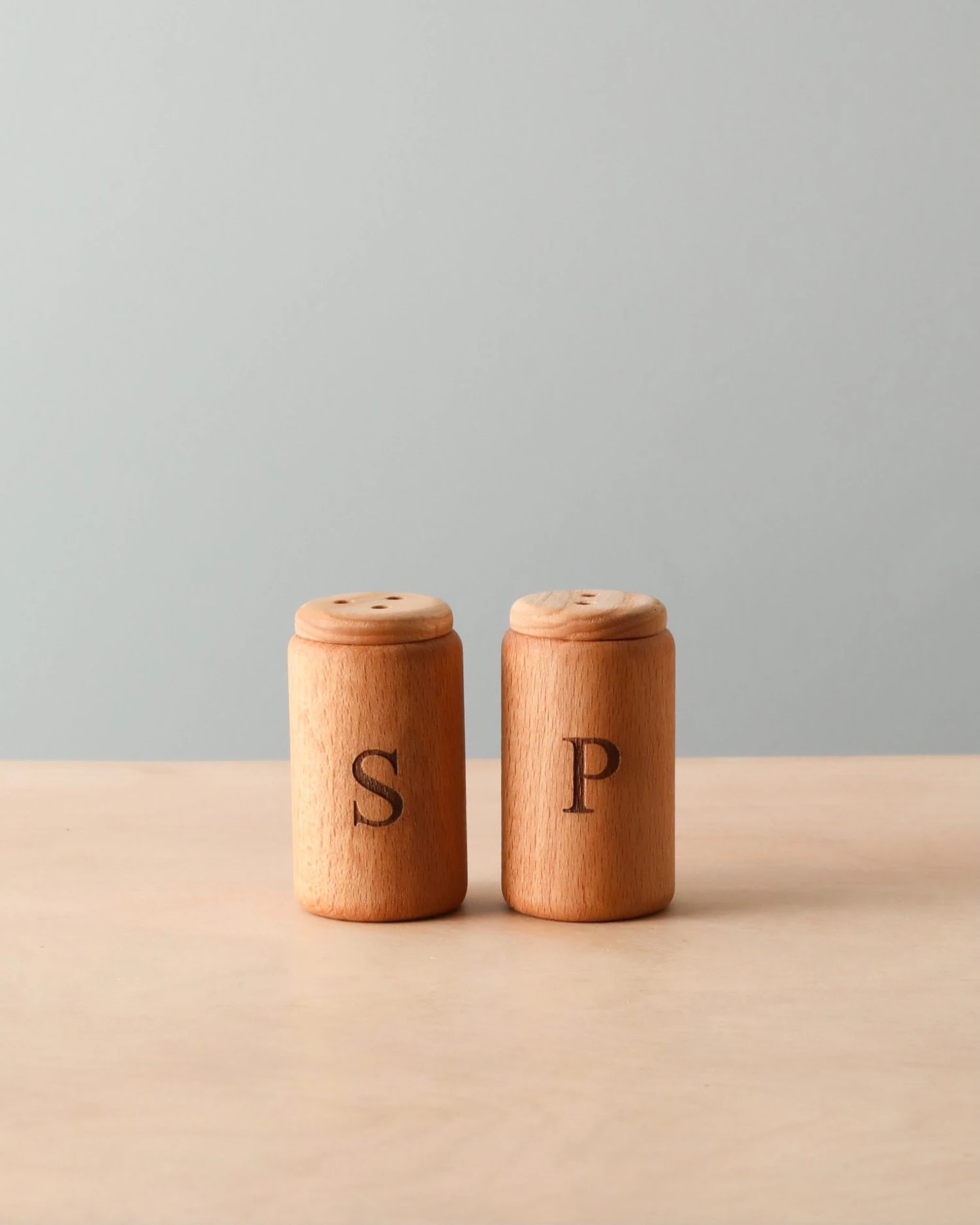 Handmade from ash wood, this salt and pepper shaker will make a rattling noise when you shake them!Â