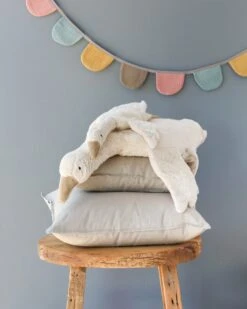 Handmade in Germany by Senger Naturwelt, this cuddly Goose doubles as a gentle warming pillow. The head and feet are filled with lamb wool and the outer layer is made with organically grown cotton. The tummy features a removable bag filled with cherrystones. The bag can be warmed up in the oven at low temperature (do not microwave) or put it in the freezer to cool special parts of your body.