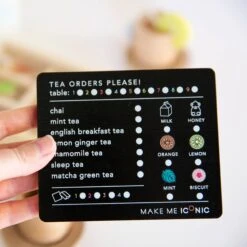 Details: – Complete with x2 cups & saucers, x2 spoons, plate, x6 tea bags in a display box, lemon wedge, mint wedge, orange wedge, tongs, menu card, x2 cookies, milk carton, honey and Matcha Tea jar with spoon.