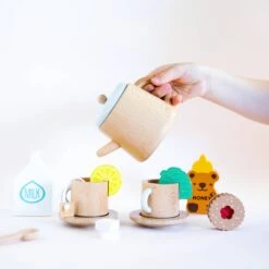 Now you can invite even more friends over for tea! Our iconic tea set extension kit sets you up perfectly to host a party of four and even introduce them to something new – fancy an organic Matcha Tea instead of your usual Earl Grey. Let me brew you a Chai. How about a Lemon Ginger infusion with a fresh slice of Lemon! Just like our classic tea set, this kit is designed to be a beautiful addition to any play space, with neutral wood tones that both boys and girls will love.