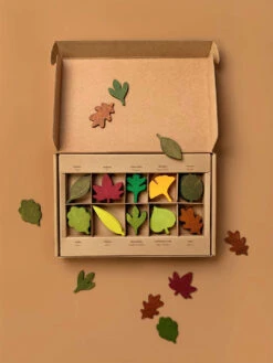 Learn to identify the leaves with different shapes and colors, count, match, make patterns, play games and create a scene for your story. There are endless play ideas with these wooden leaves for loose parts play.